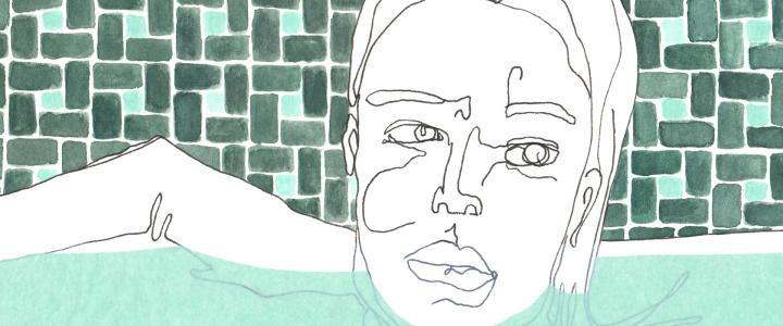 Drawing from the artists bathtub motifs, these drawings create the basis for the animations found in her VR installation work.