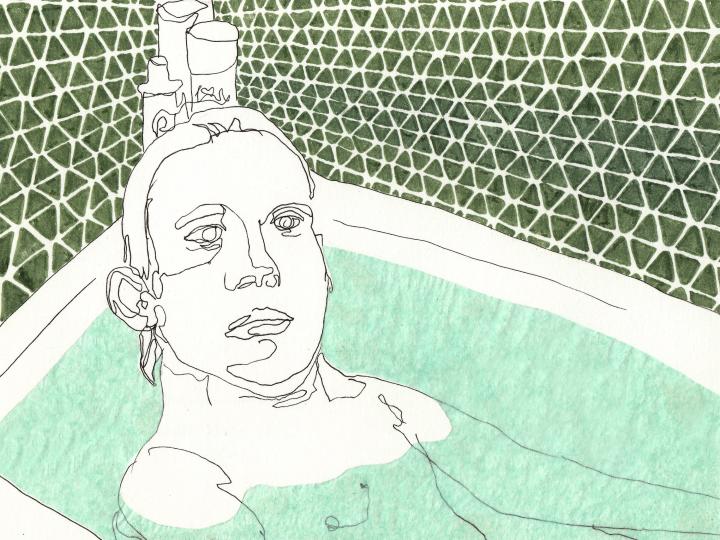 Drawing from the artists bathtub motifs, these drawings create the basis for the animations found in her VR installation work.